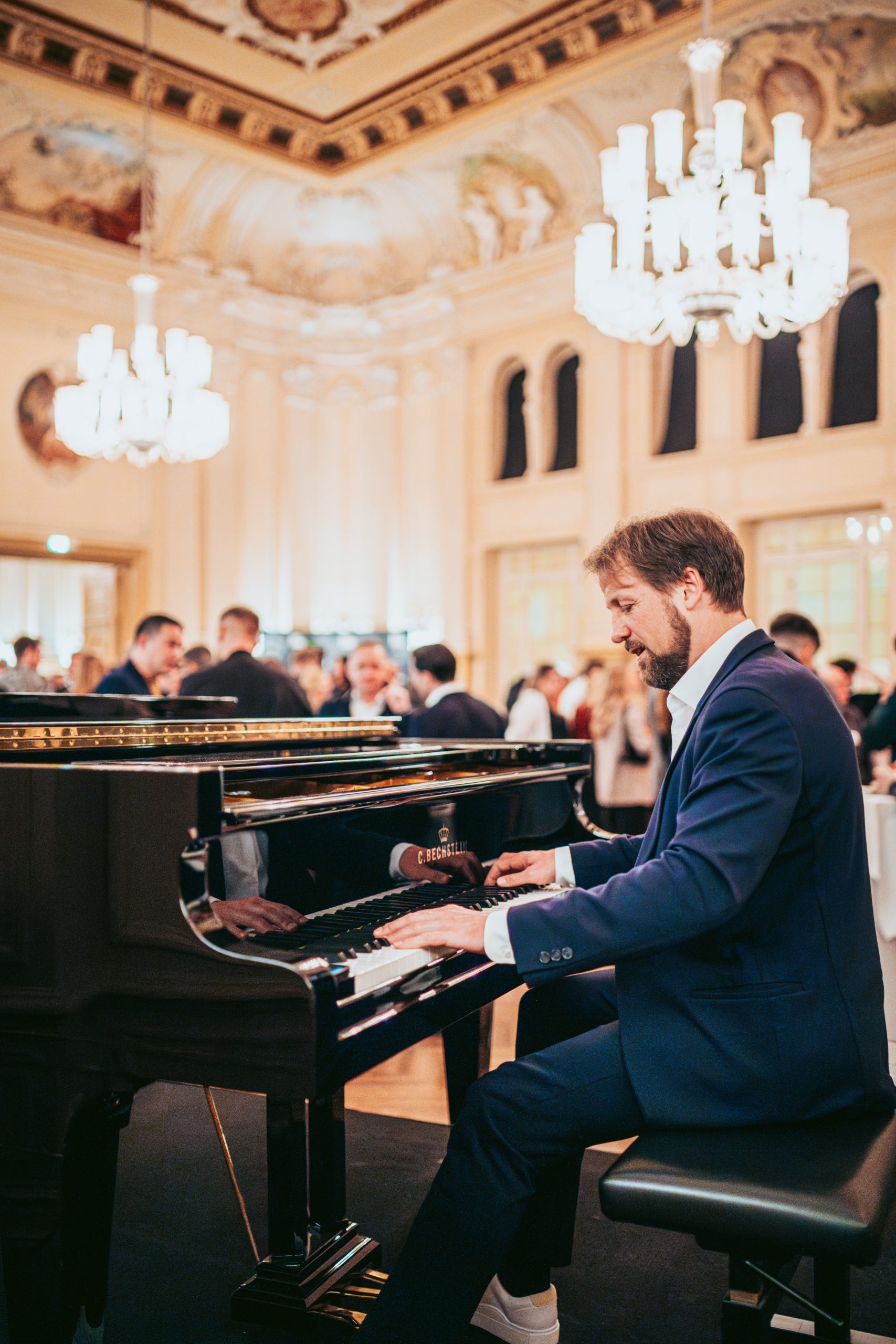 Der Salles de Pologne ist ein neobarockes Juwel im Herzen Leipzigs. Insbesondere für Netzwerk-Veranstaltungen bietet dieser prachtvolle Barocksaal eine elegante Atmosphäre. Nachdem ich bereits eine Überstunde als Pianist im Gewandhaus begleiten durfte, war es mir eine besondere Freude, auch diesem Event musikalisch „den letzten Schliff” zu geben.